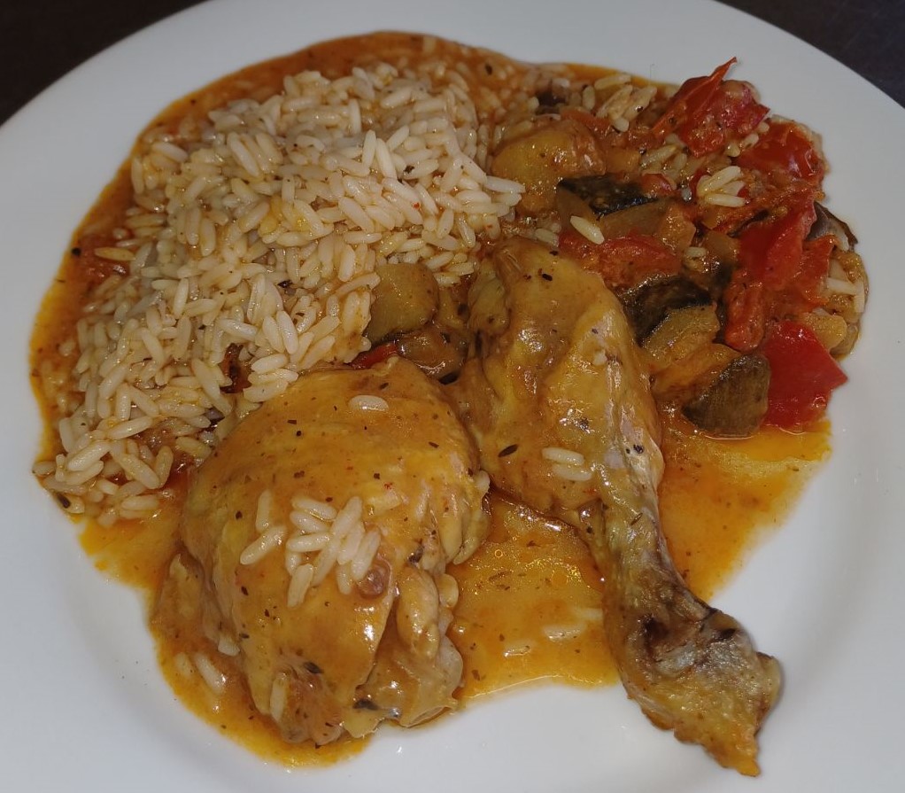 • Poulet basquaise avec cuisse de poulet de Janzé (riz et ratatouilles)