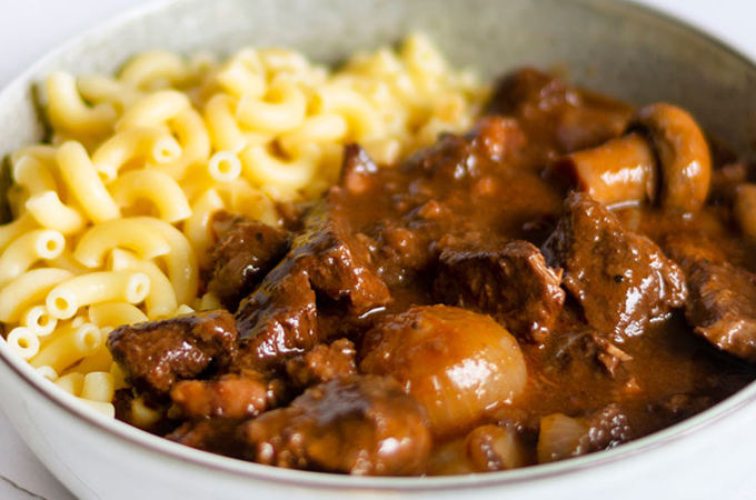Bœuf bourguignon-Coquillettes