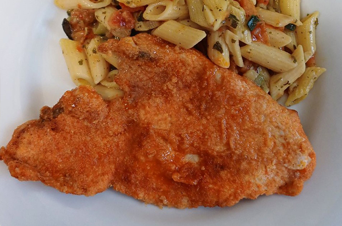 Escalope à l'Italienne -Purée de patate douce ou poêlée Pasta Verde