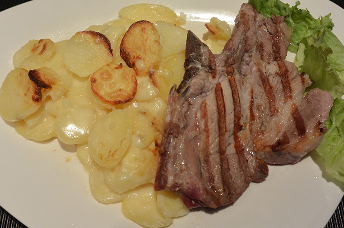 Côte de porc grillée-Pommes de terres sarladaise