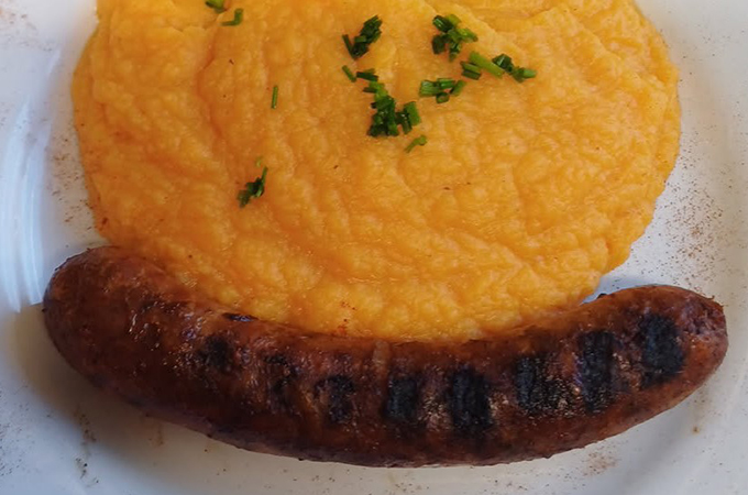 Saucisse grillée- Purée de patate douce ou poêlée Pasta Verde