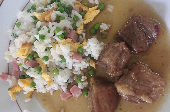 Sauté de porc au caramel-Riz cantonais