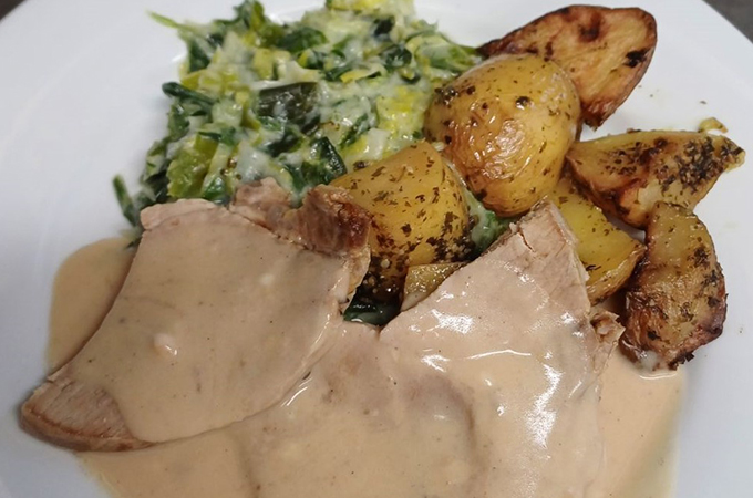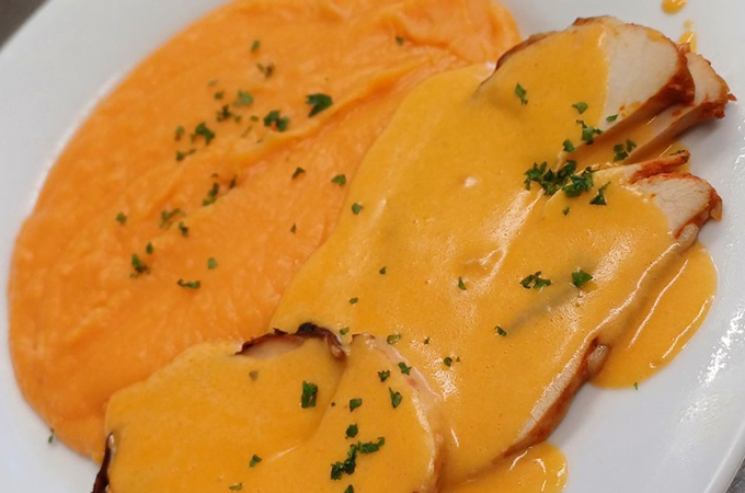 Escalope à l'Indienne-Purée ou poêlée Bretonne