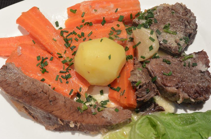 Rosbeef-sauce poivre , gratin dauphinois et flageolets