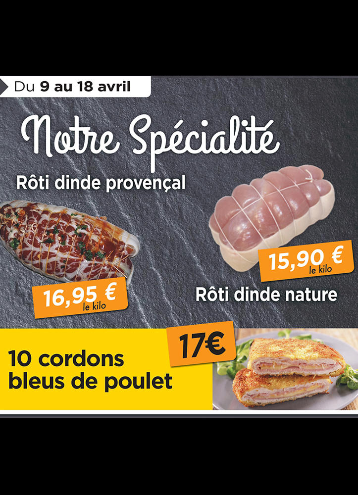 Chaque mois nous vous proposons des promotions sous forme de colis et/ou un produit bien specifique. Nous adaptons nos offres en fonction des périodes comme par exemple les paupiettes du roi ou encore le black friday...
